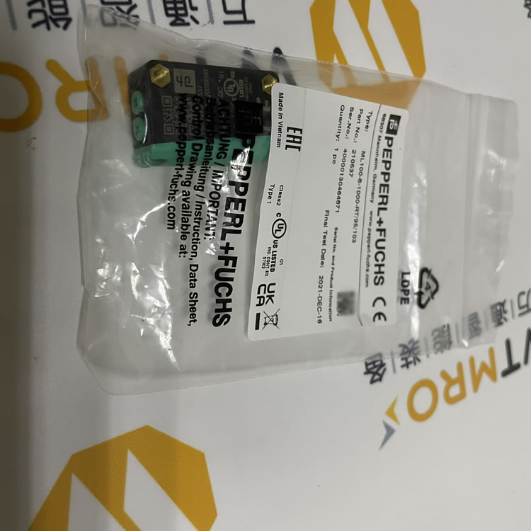 德國PEPPERL+FUCHS ML100-8-1000-RT/95/103漫反射型光電傳感器,是工業檢測領域的優質選擇。它采用微型設計,結構緊湊,安裝靈活。光斑明亮清晰,配合全金屬螺紋安裝方式,穩固且精準。清晰可見的LED可直觀指示通電和開關狀態,方便用戶監控。此外,該傳感器對環境光不敏感,能在復雜光照條件下穩定工作,為工業自動化檢測提供可靠保障。