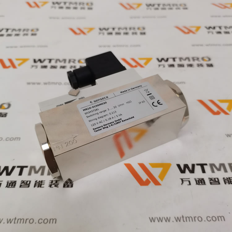 意大利 Senseca 的 MR1K-015GM020 流量開關,連接類型為 1/2 英寸內螺紋,采用插頭連接器 DIN 43650-A 進行電氣連接 。準確性為 ± 最終值的 5%,流量范圍在 2 - 30 升 / 分鐘,可用于培養瓶場景,通過簧片接觸實現交替功能。